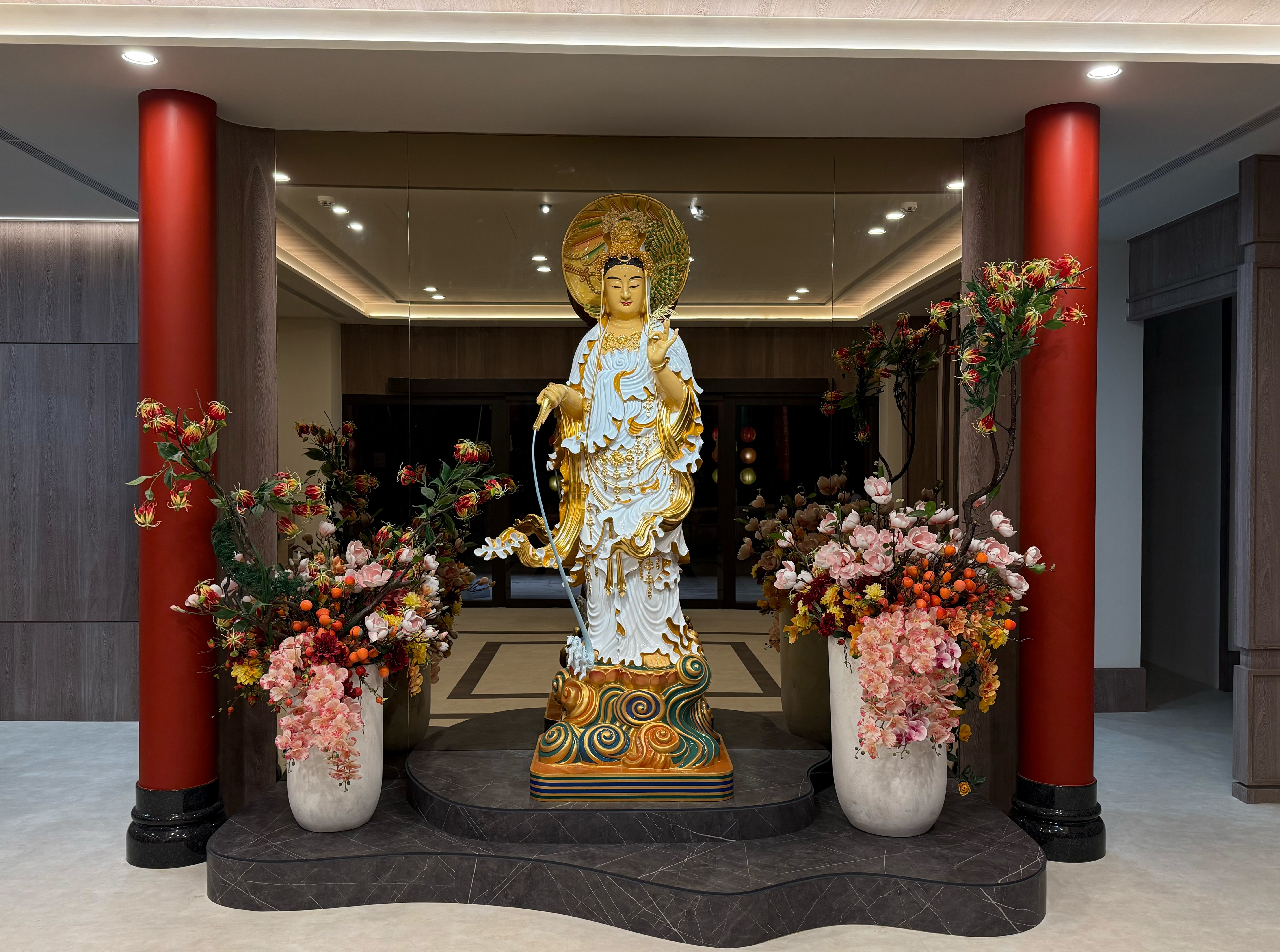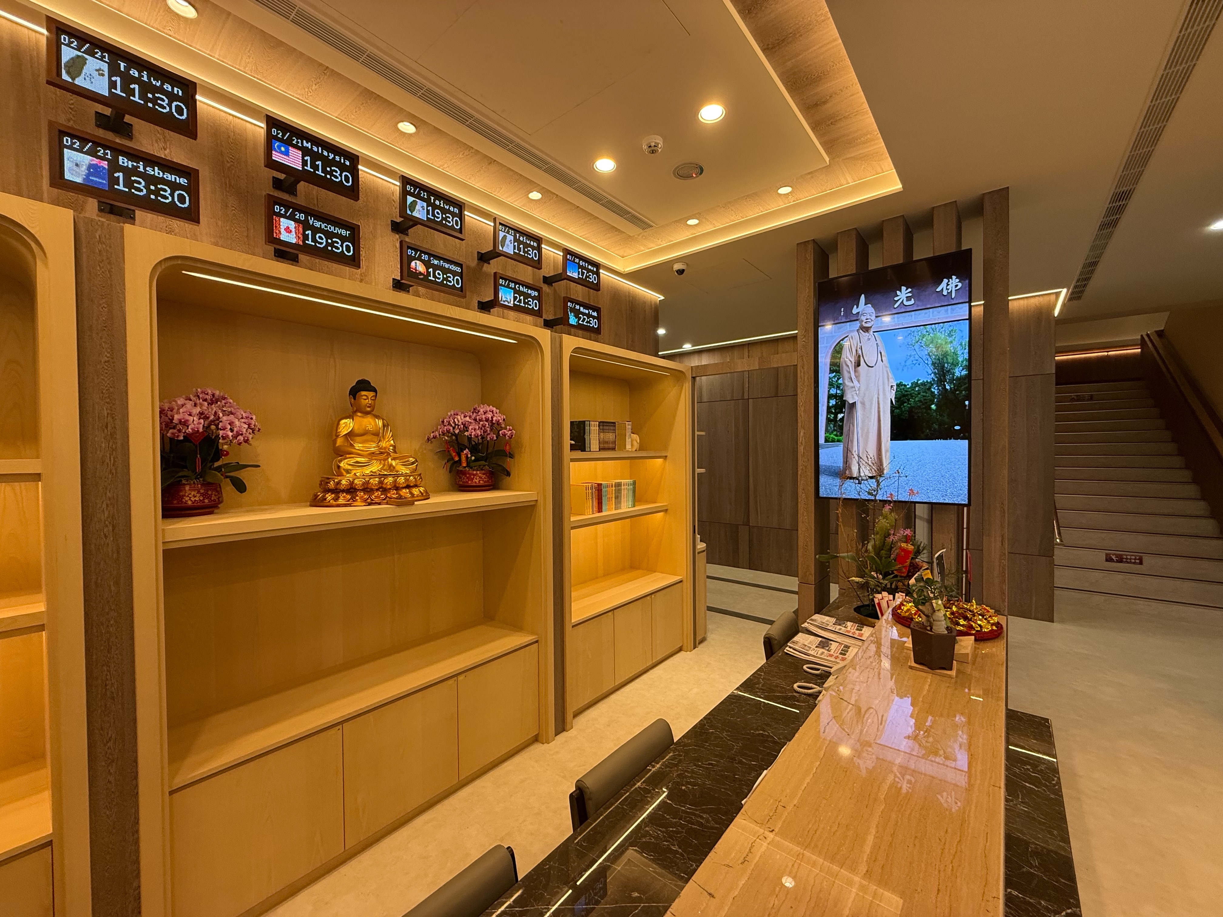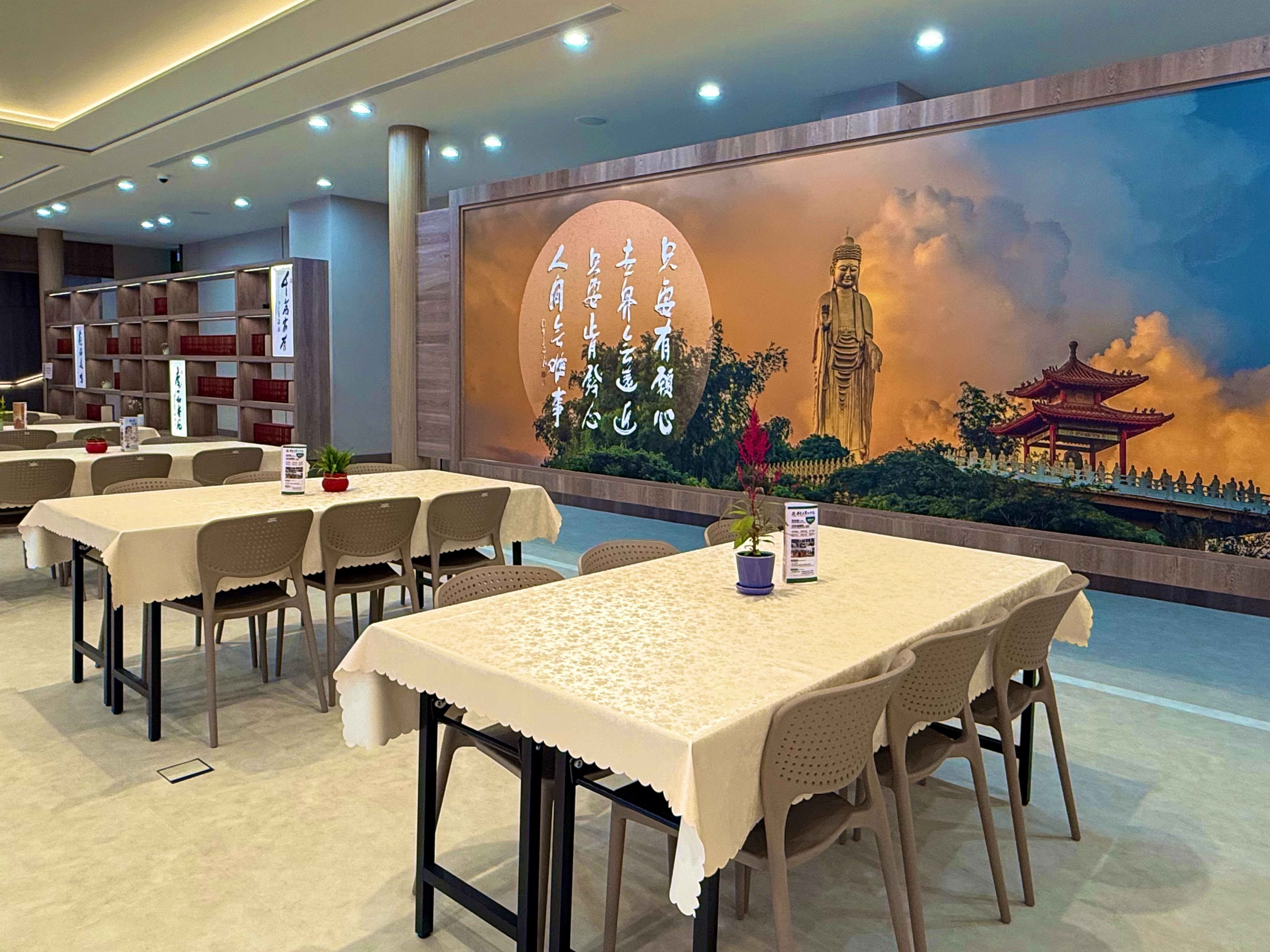 • 茶水間—1樓設於:觀音菩薩像後方(冷開水)及五觀堂內東北側(冷、熱開水), 2-5樓分別設於1號電梯出口左後方及2號電梯出口前方。