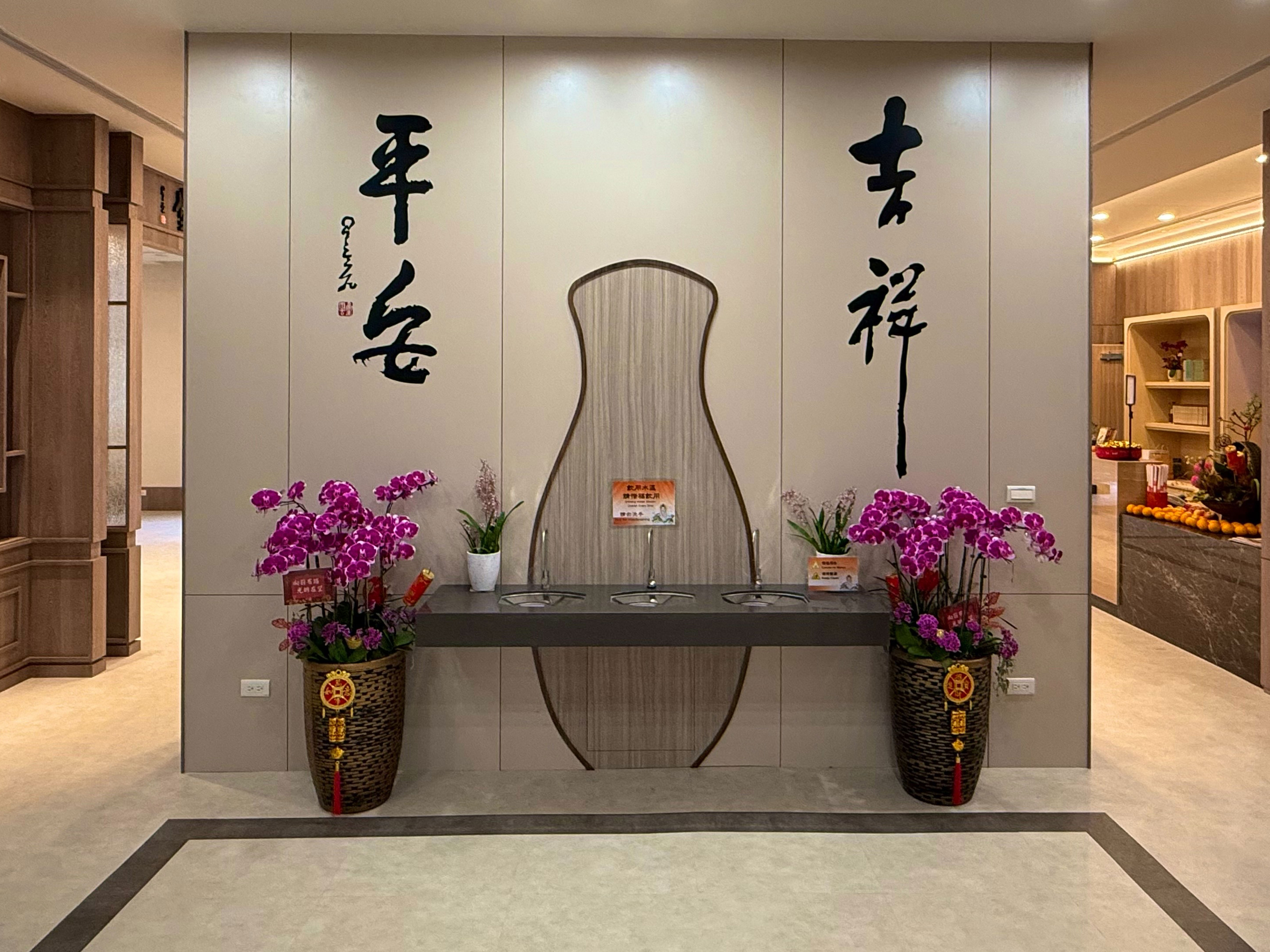 • 茶水間—1樓設於:觀音菩薩像後方(冷開水)及五觀堂內東北側(冷、熱開水), 2-5樓分別設於1號電梯出口左後方及2號電梯出口前方。